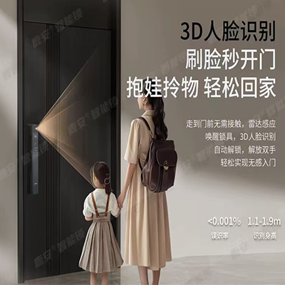 鹿安P70-3D人脸+指纹+密码识别智能锁