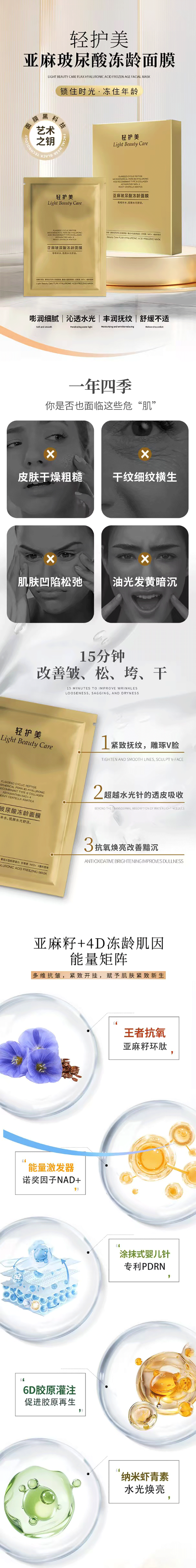 轻护美亚麻玻尿酸冻龄面膜5片/盒(1盒装)