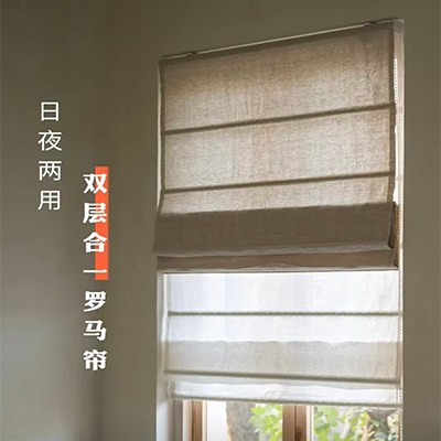 窗帘-纯亚麻双层罗马帘/平方米