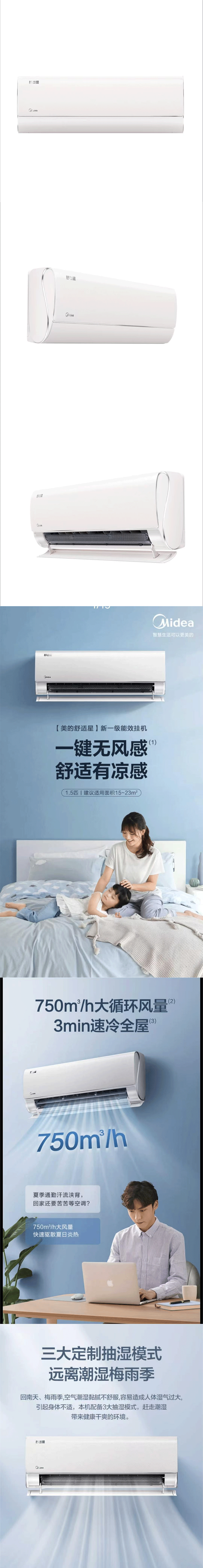 美的空调大1.5匹新一级能效变频冷暖家用省电自清洁分体式套机挂机空调KFR-35GW/TA1-1