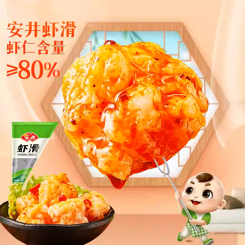 产品名称:安井虾滑(火锅虾滑、虾滑球)品牌:安井 (Anjoy),中国速冻食品领军品牌,上市企业 (股票代码:603345)规格: