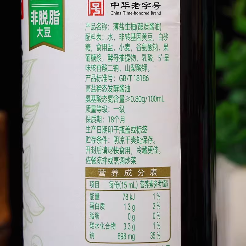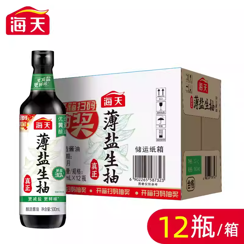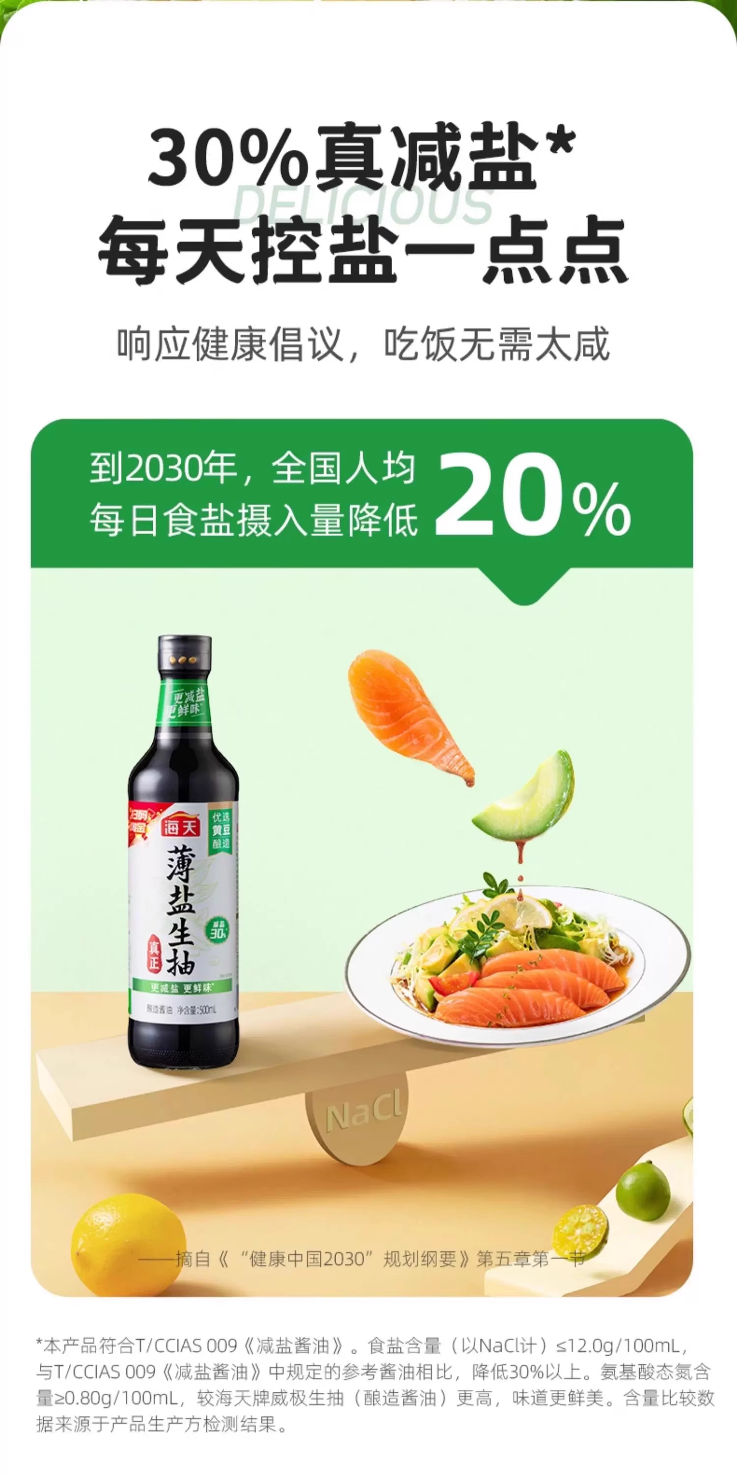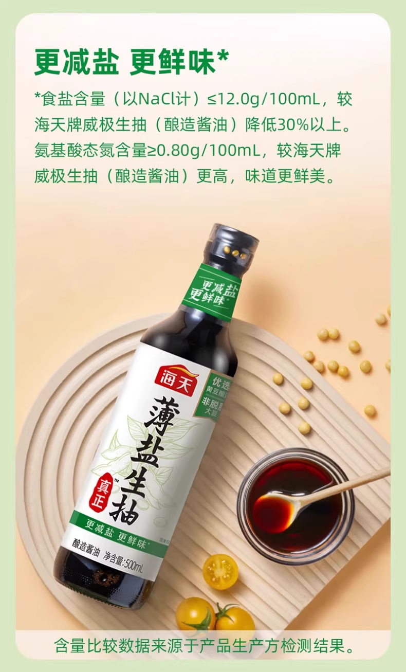 海天薄盐生抽500ml减盐淡盐酿造酱油凉拌炒菜蒸鱼家用厨房调味料