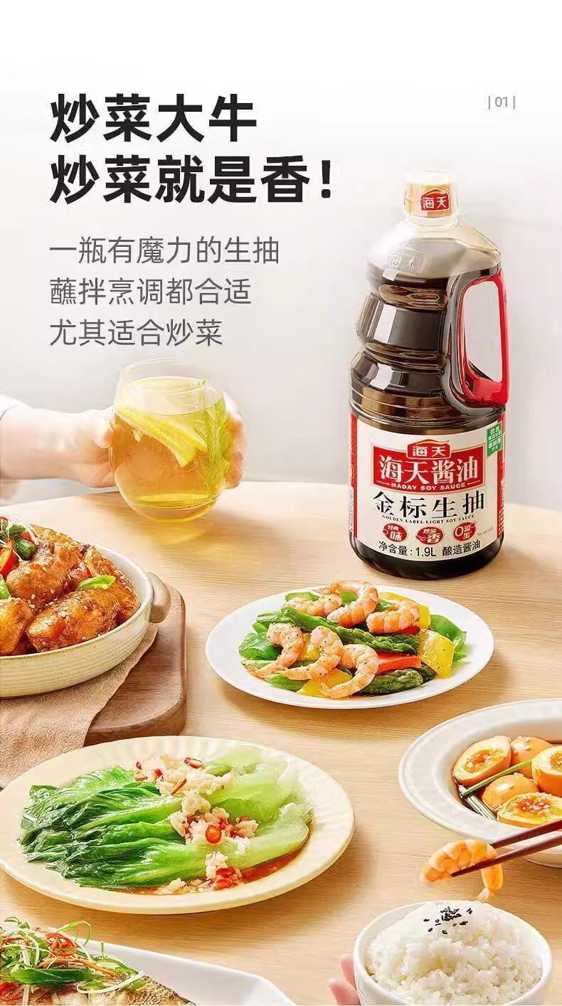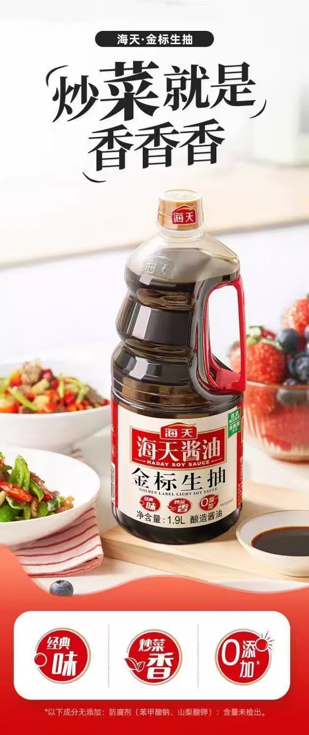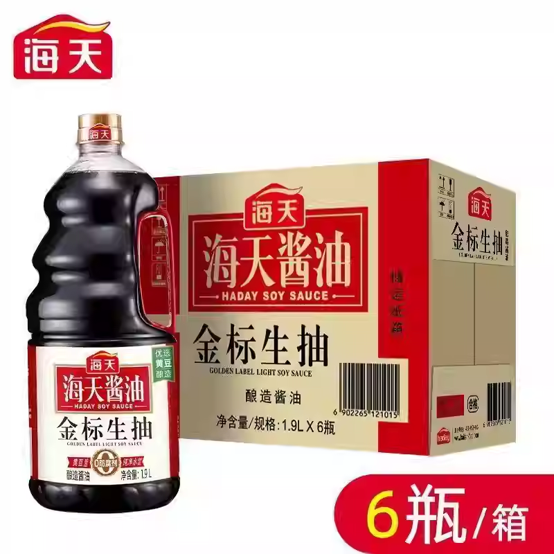海天金标生抽1.9L*6瓶酱油黄豆酿造凉拌蒸鱼海鲜凉拌炒