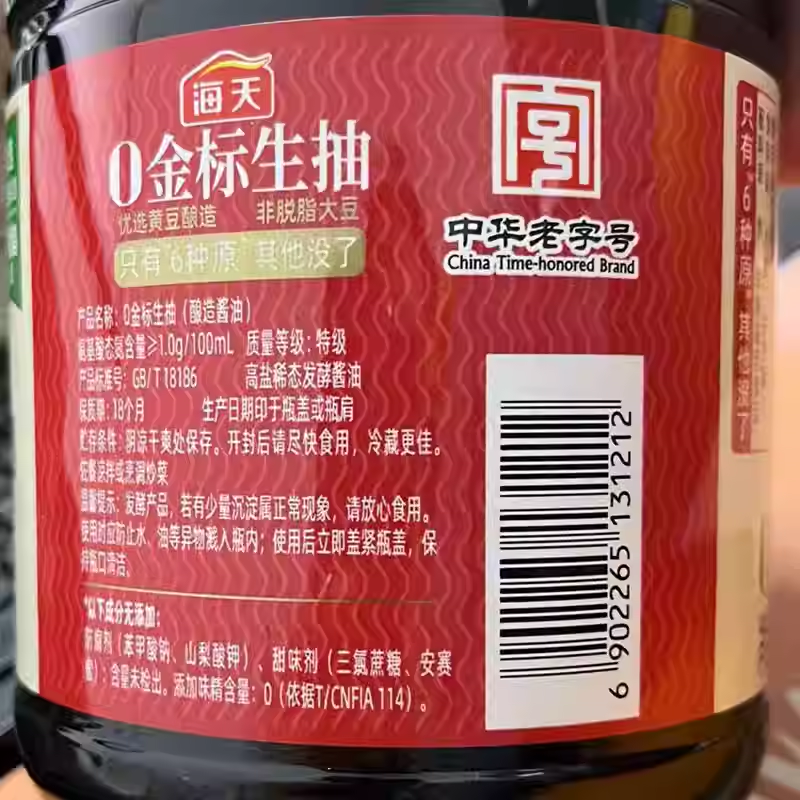 海天金标生抽 1.9L/瓶*6瓶