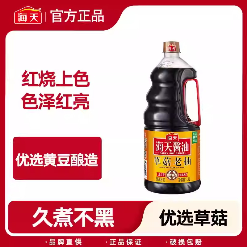 海天草菇老抽1.9L*6瓶装整箱商用炒菜卤味红烧肉上色黄豆酿造酱油