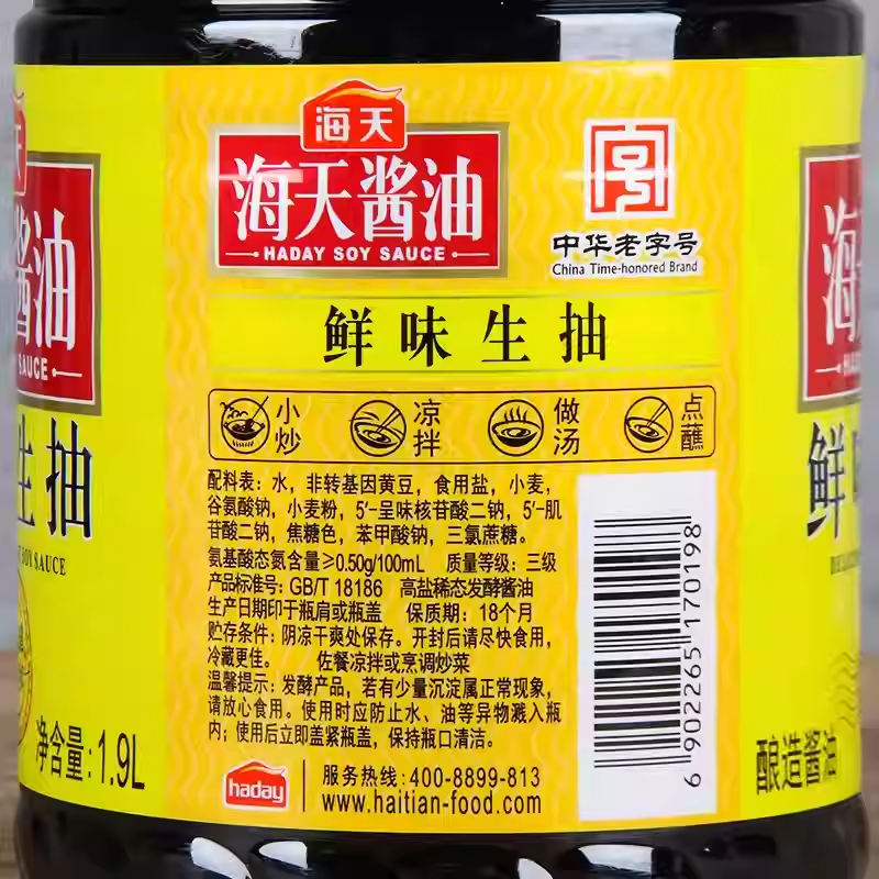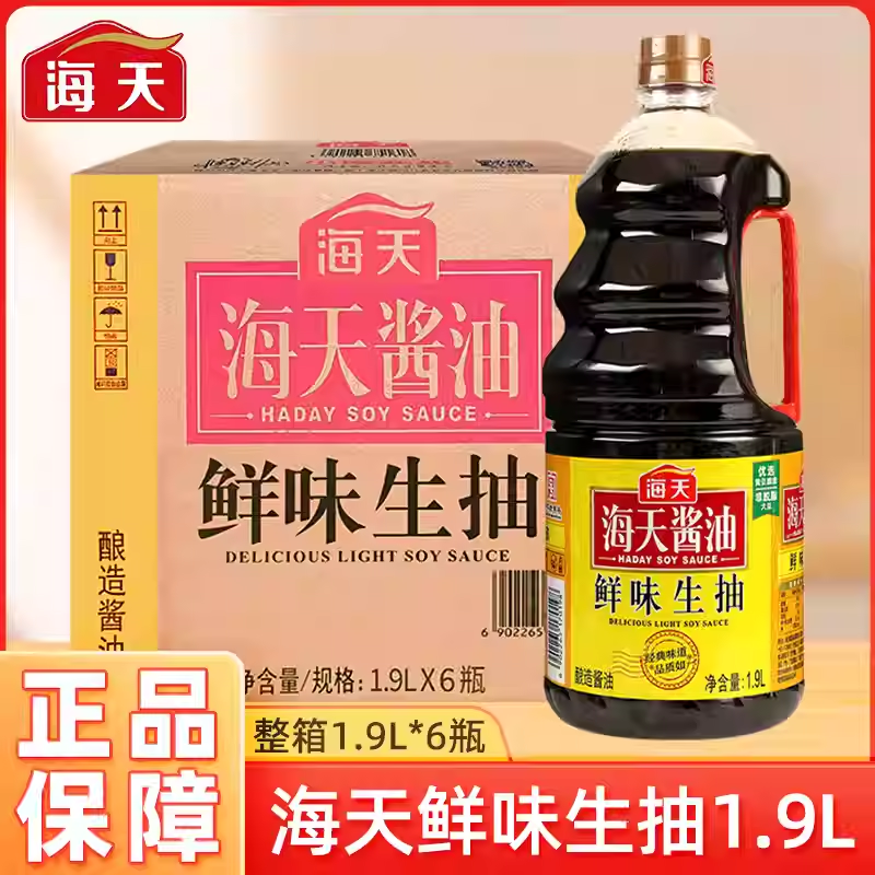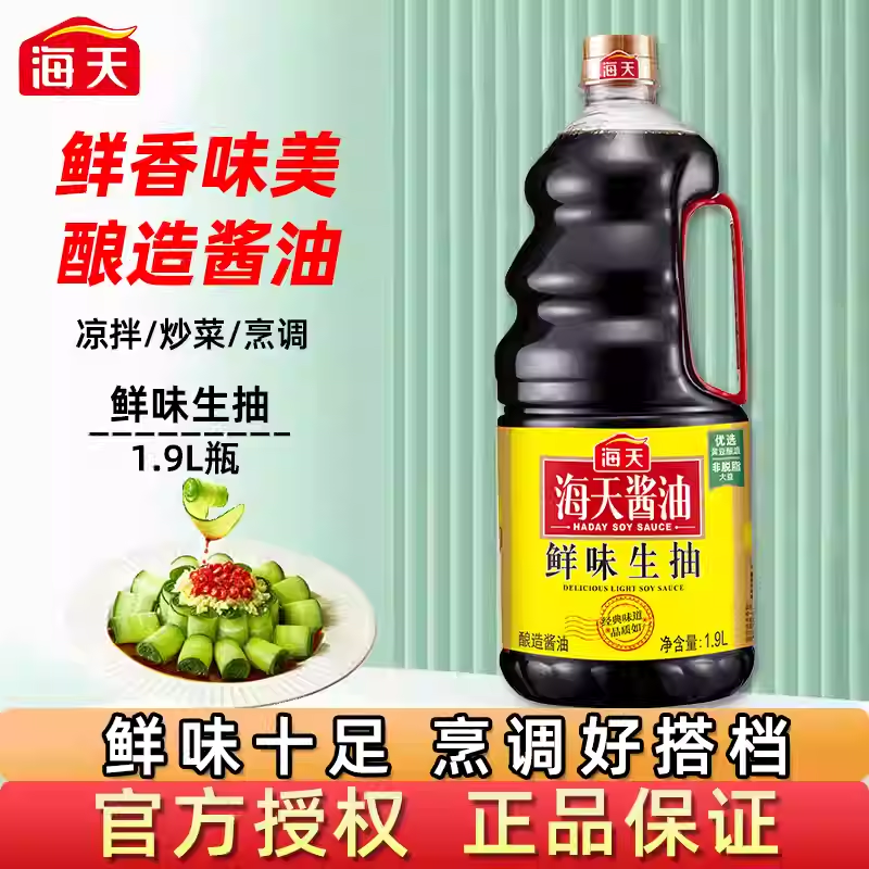 海天鲜味生抽1.9L家用炒菜凉拌海鲜调味品酿造酱油餐饮商用大瓶装