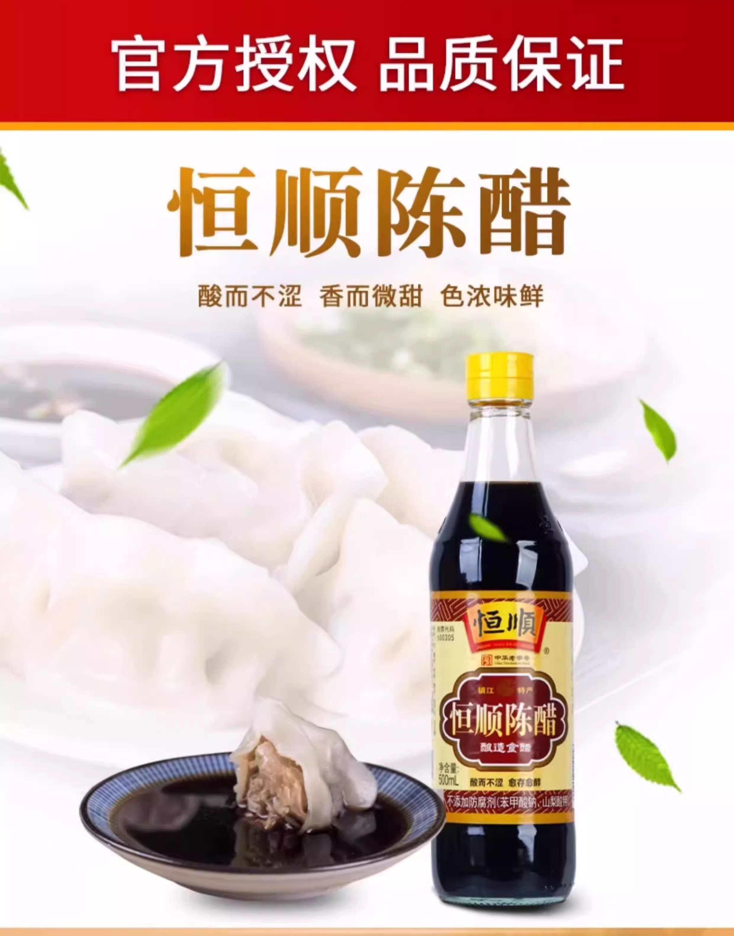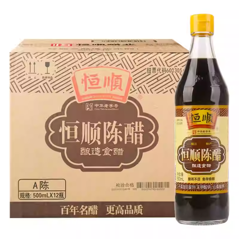 恒顺镇江陈醋500ml瓶装(A陈)糯米酿造食用醋家用凉拌菜蘸饺子香醋
