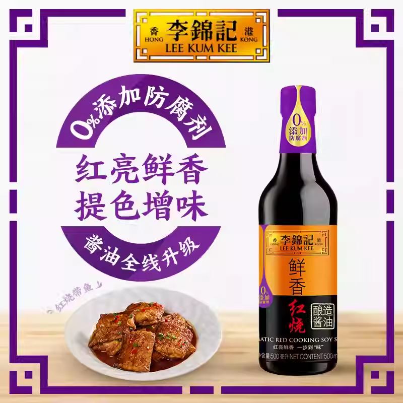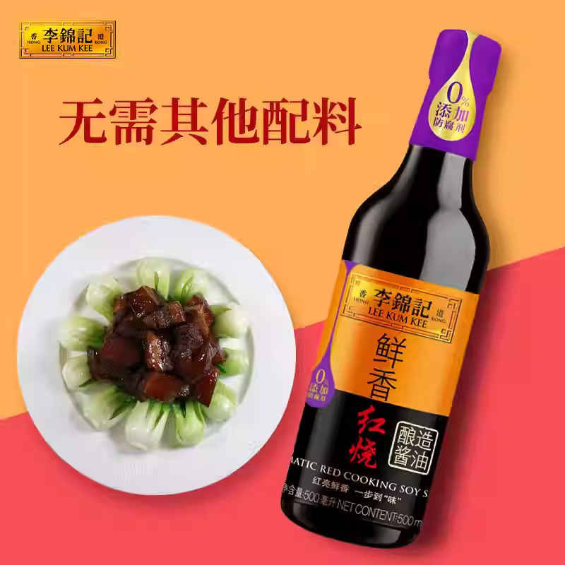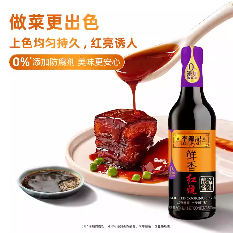 李锦记零添加防腐剂鲜香红烧酱油500ml红烧炖焖老抽酱油调味