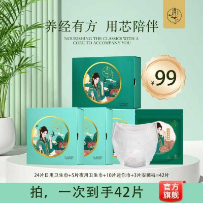 24片日用卫生巾+5片夜用卫生巾+10片迷你巾+3片安睡裤,一次到手42片