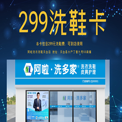 本卡包含299元洗鞋费,可到店使用阿啦洗衣洗鞋天台店 地址:天台县大户丁巷九号55商铺