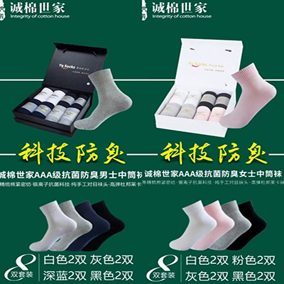 诚棉世家AAA级抗菌中筒袜男士/女士--8双/盒