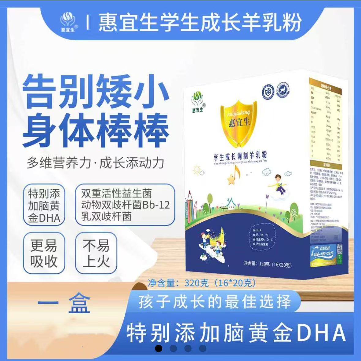 惠宜生学生成长羊奶粉 320g/盒*2盒