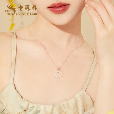 老凤祥纯银925银玉髓平安圆满经典平安扣项链 LFXSK0311