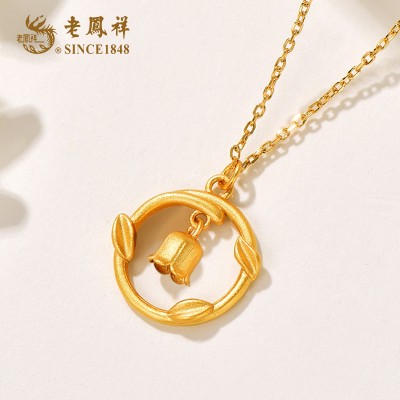 老凤祥纯银925银铃兰花开 幸福归来圆环花朵项链 LFXSK0308