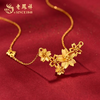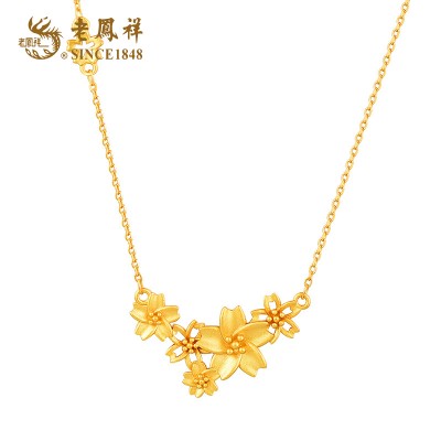 老凤祥纯银925银长春花开 欢愉一声喜庆花朵项链 LFXSK0310