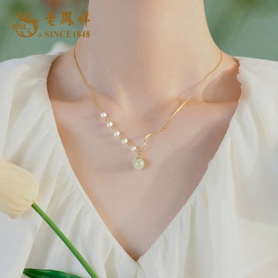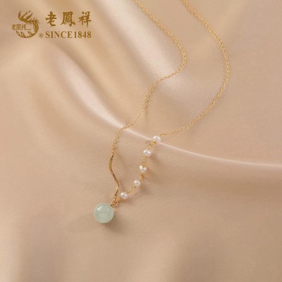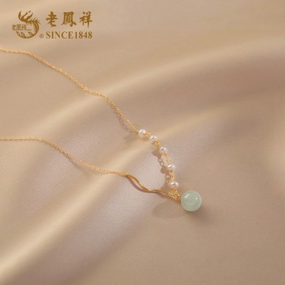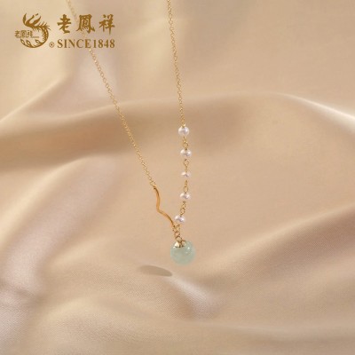 老凤祥S925银镶和田玉绿精灵项链 LFXLY0024