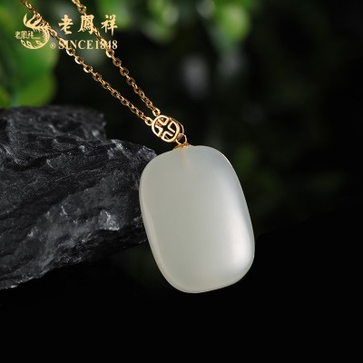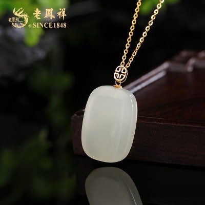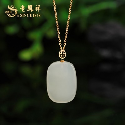 老凤祥18K金和田玉平安无事牌吊坠(送S925银链)LFXLY0110