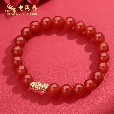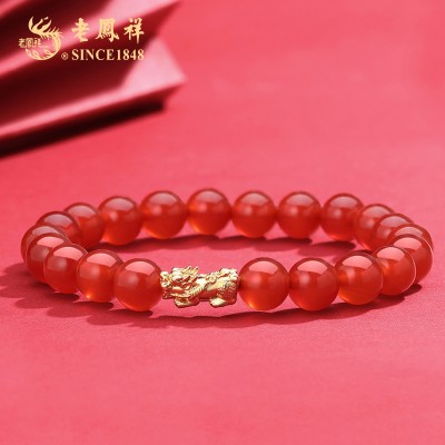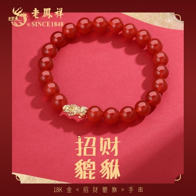 老凤祥真金18K金招财貔貅吊坠(送高品质红玛瑙散珠)LFX000139