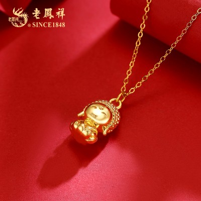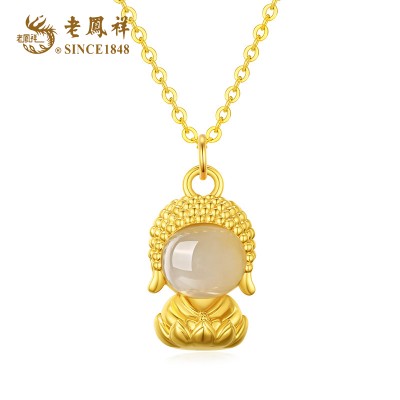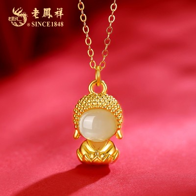 老凤祥真金18K金镶嵌天然和田玉弥勒佛经典玉石吊坠 LFX000137