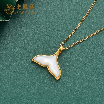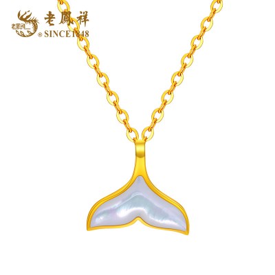 老凤祥真金18K金镶嵌白贝母鱼生有你吊坠 LFXJW225029