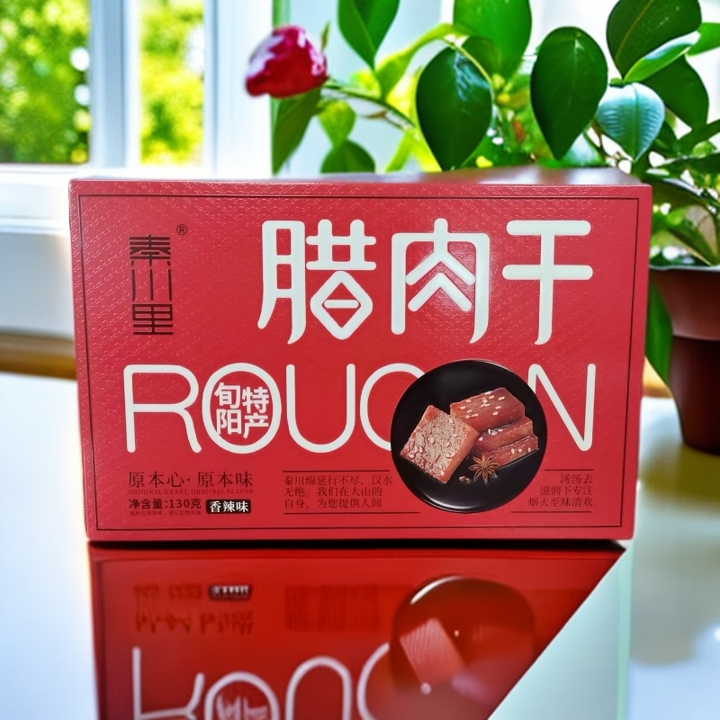 “秦川里”品牌腊肉干 所用原材料均取材于秦巴山区原生态放养猪,生长周期都在一年以上。制作工艺采用传统的腌制方法,腌制时间根据季节、肉的种类和部位来确定,通常控制在3--7天。经过多年摸索,结合农家烟熏的经验,选用桦梨木作为燃料。保证了腊肉的色泽、香气和口感,保留了秦巴腊肉的传统风味。 产品在生产过程种均不允许添加食品行业禁止、限制的添加剂、色素、防腐剂等物质,对于日常使用的酱油、食盐等调味品,严格按照要求使用,确保大家可以吃到记忆里儿时的味道。