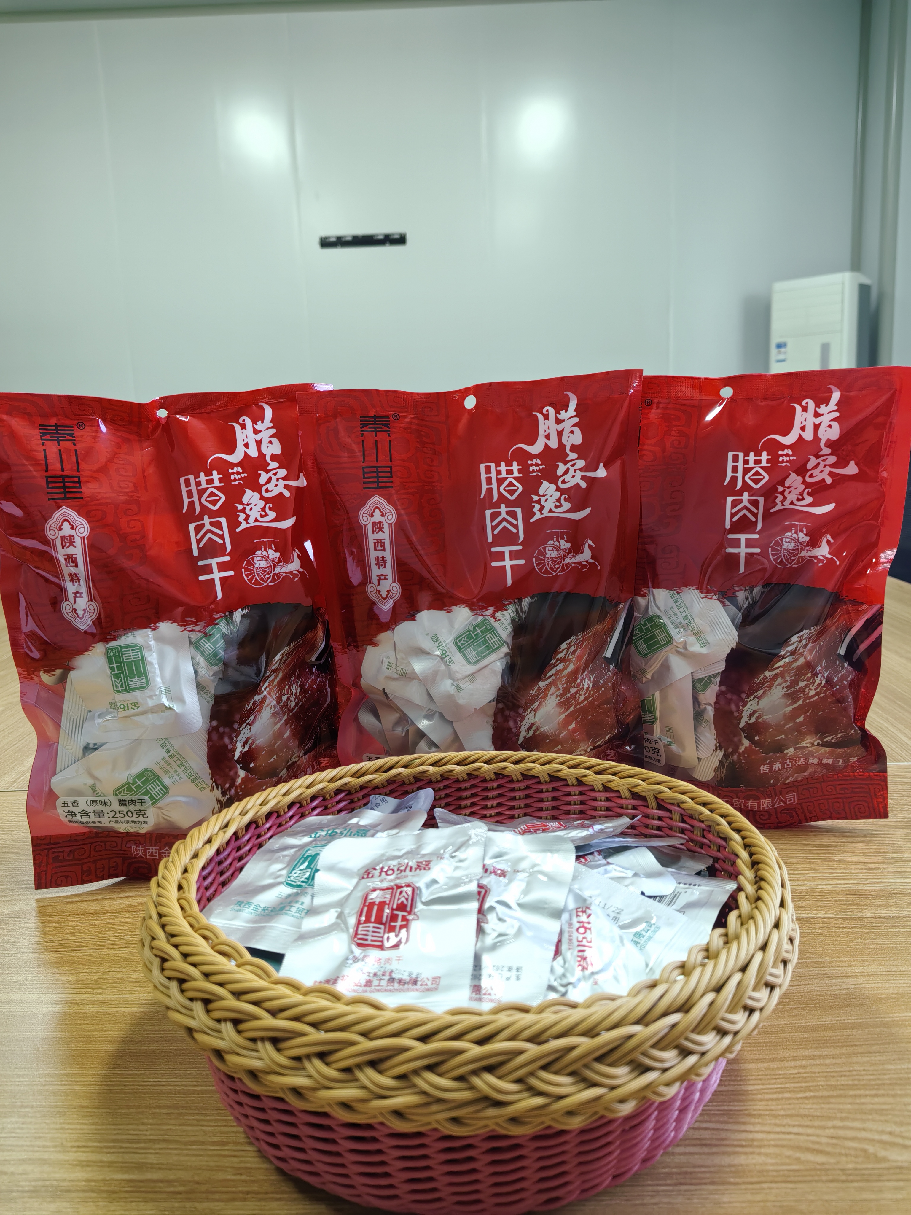 “秦川里”品牌腊肉干 所用原材料均取材于秦巴山区原生态放养猪,生长周期都在一年以上。制作工艺采用传统的腌制方法,腌制时间根据季节、肉的种类和部位来确定,通常控制在3--7天。经过多年摸索,结合农家烟熏的经验,选用桦梨木作为燃料。保证了腊肉的色泽、香气和口感,保留了秦巴腊肉的传统风味。 产品在生产过程种均不允许添加食品行业禁止、限制的添加剂、色素、防腐剂等物质,对于日常使用的酱油、食盐等调味品,严格按照要求使用,确保大家可以吃到记忆里儿时的味道。