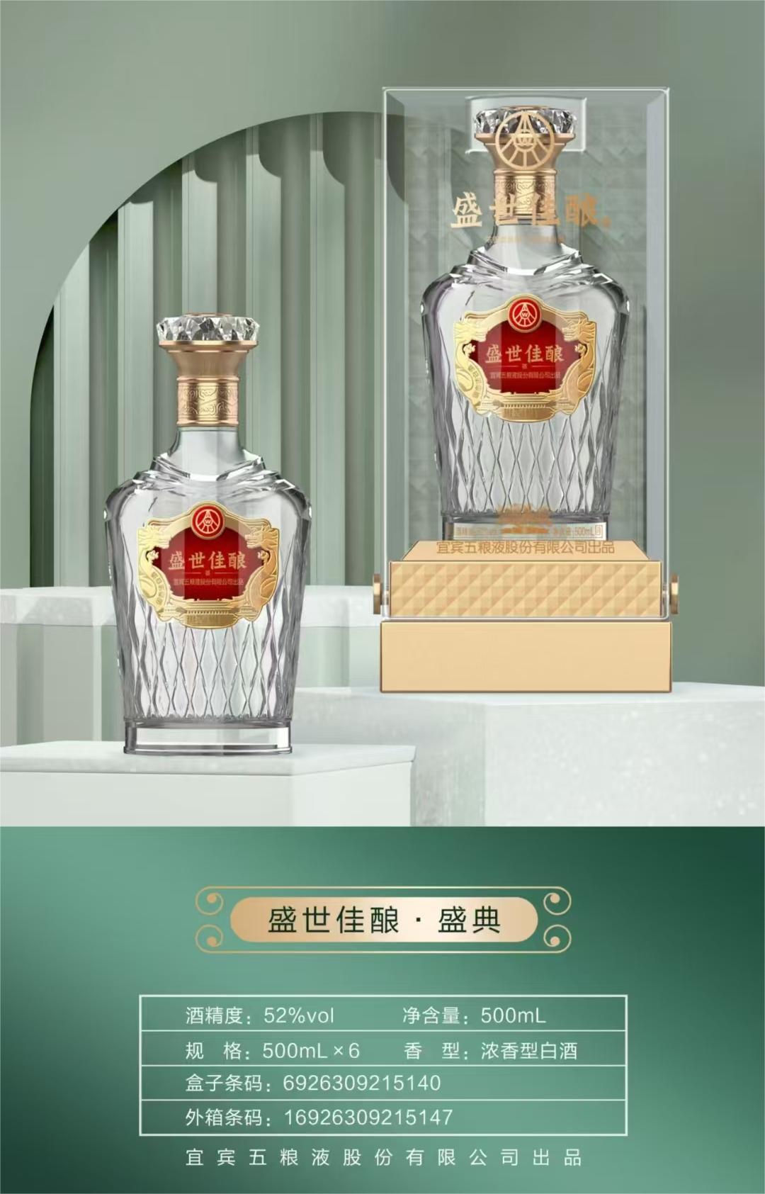 2瓶五粮液盛世佳酿(钻石)亚格力透明盒浓香型白酒52度