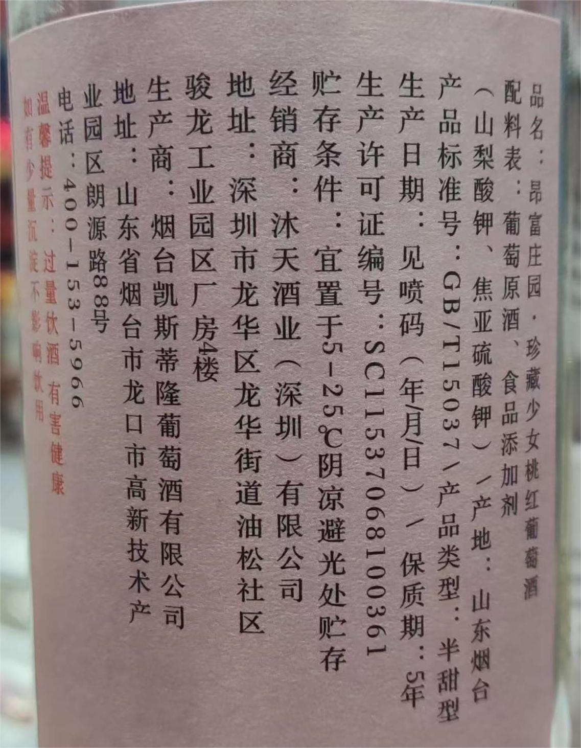 2瓶昂富庄园.珍藏少女桃红葡萄酒半甜型