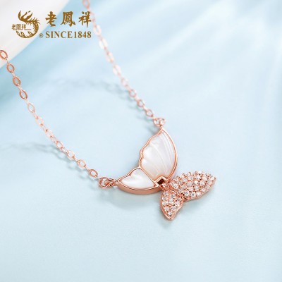 老凤祥S925银深海极光母贝月光蝶项链 LFX000018