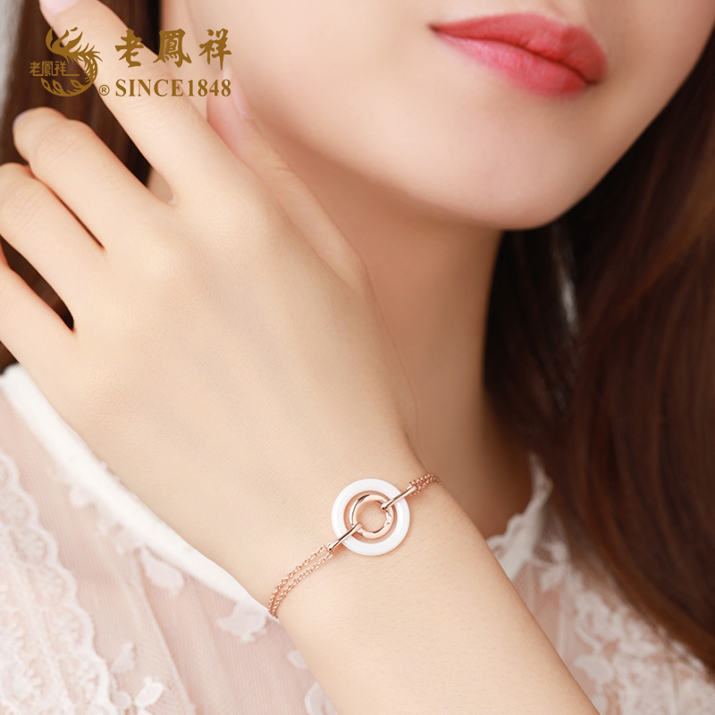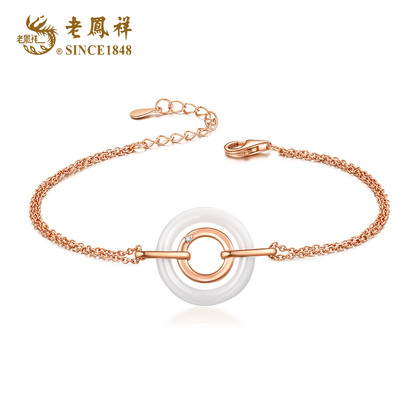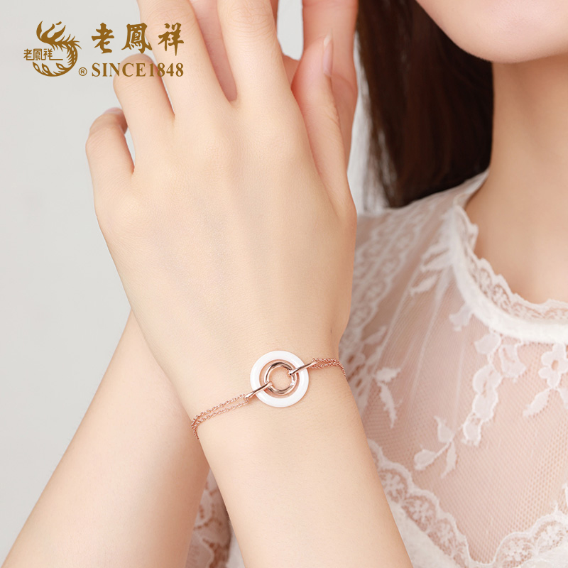 老凤祥天然钻石轻奢双环S925银钻石手链 LFX000249