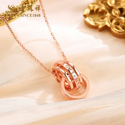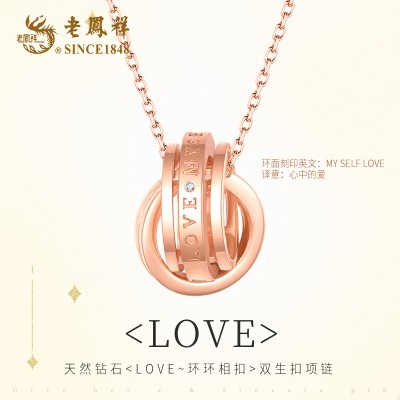 老凤祥天然钻石环环相扣双生扣项链 LFX000041