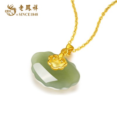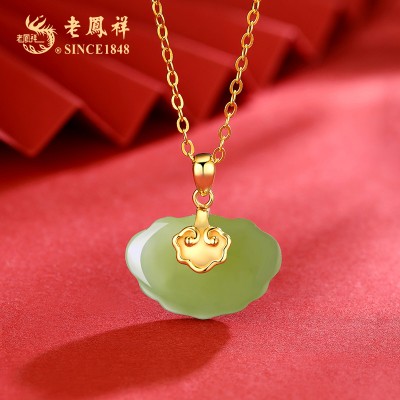 老凤祥 S925银镶嵌和田玉祥云如意项链 LFX000159