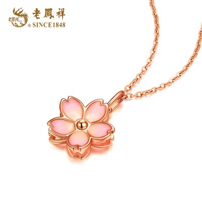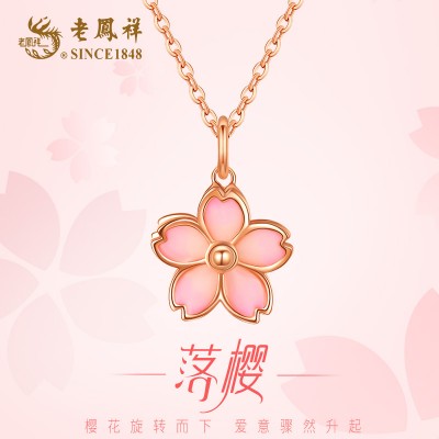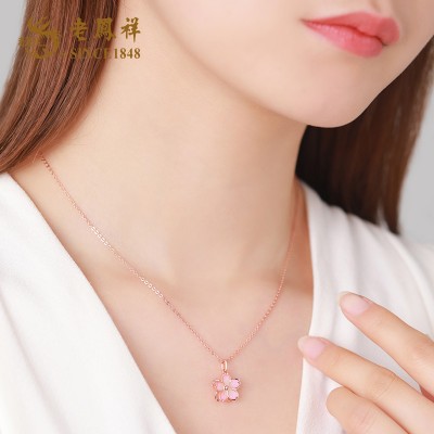 老凤祥S925银粉色珐琅只“樱”有你项链 LFX000037