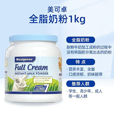 2罐Maxigenes澳洲蓝胖子全脂 脱脂高钙奶粉1000g*2罐