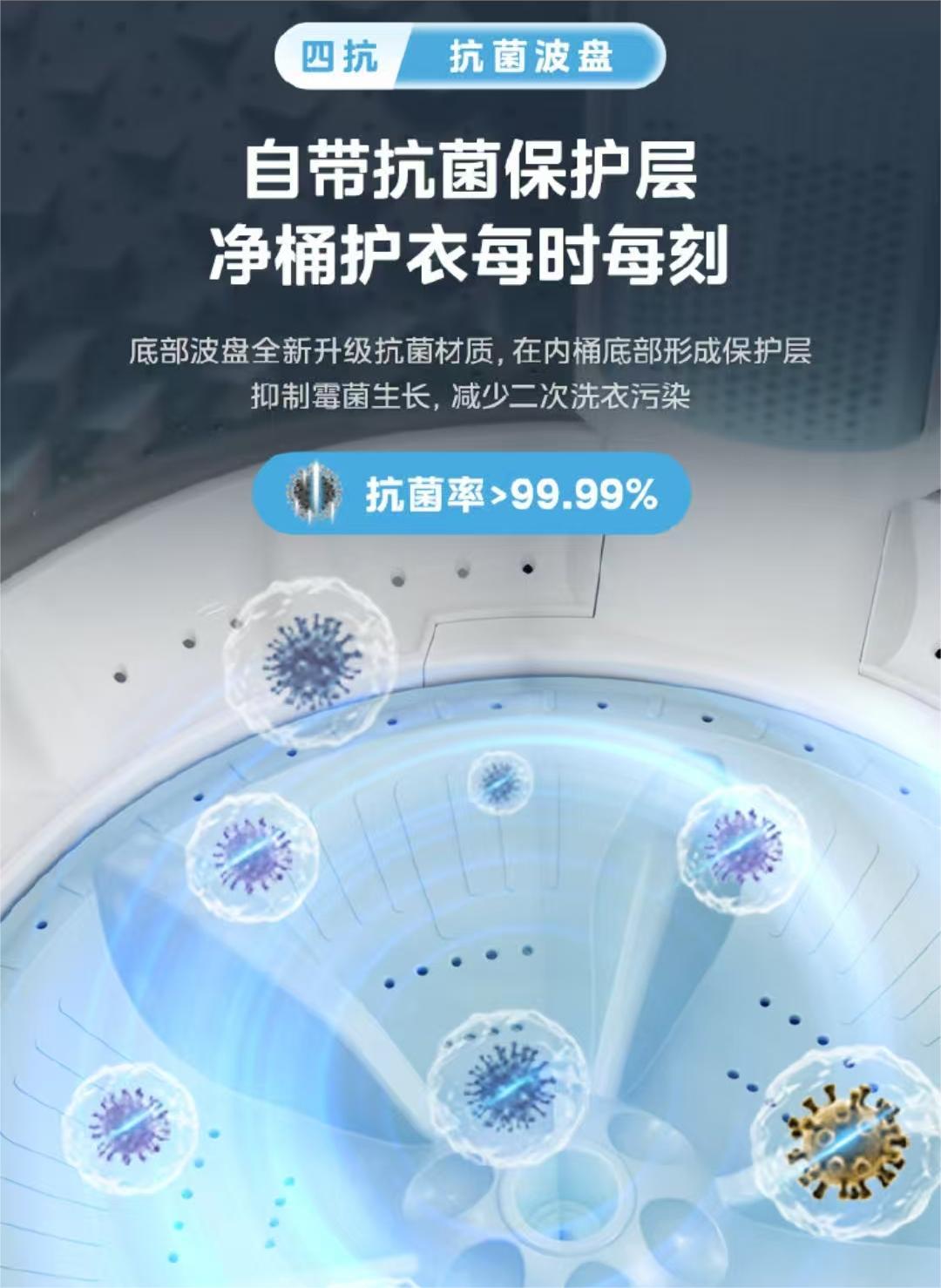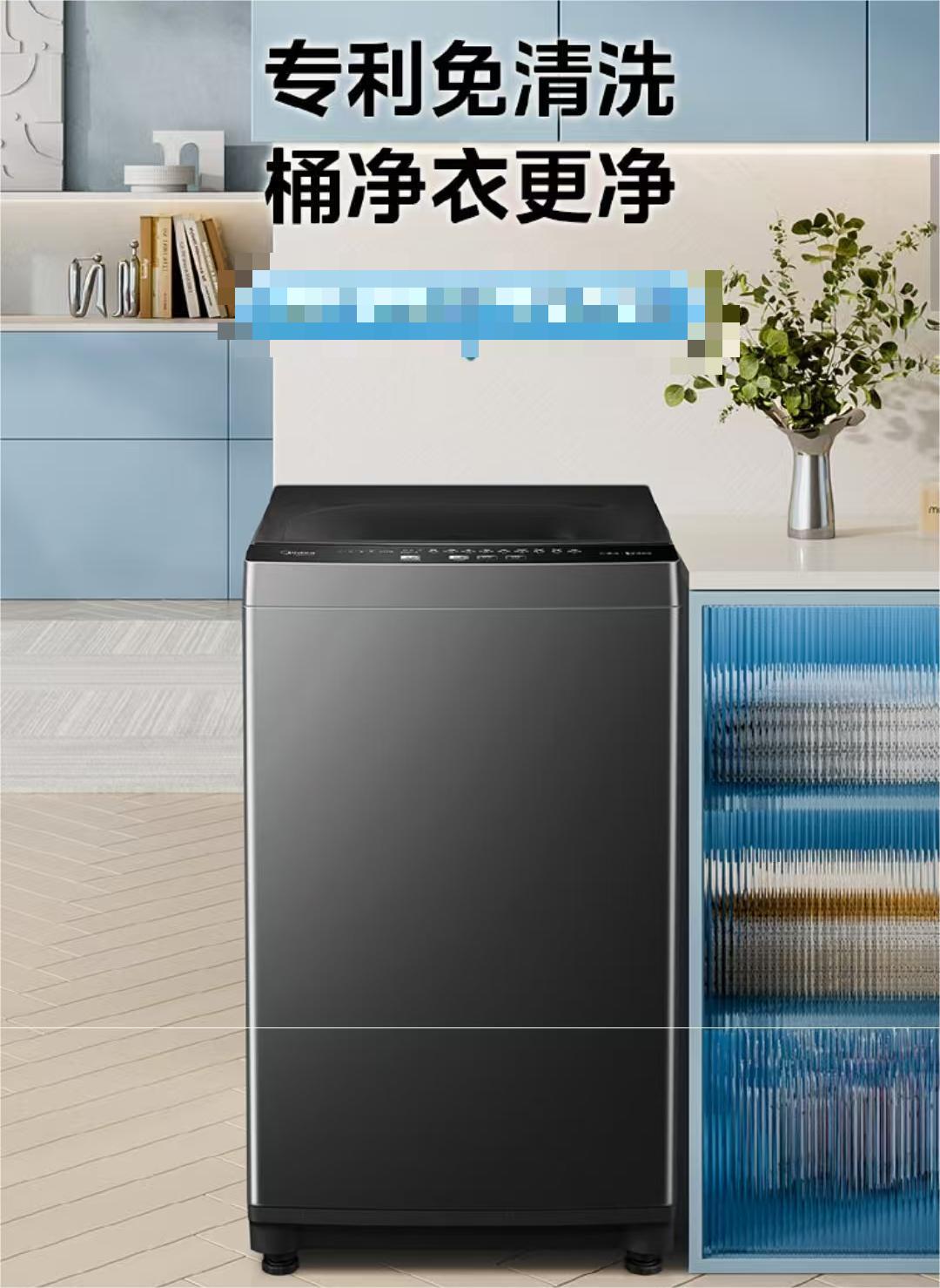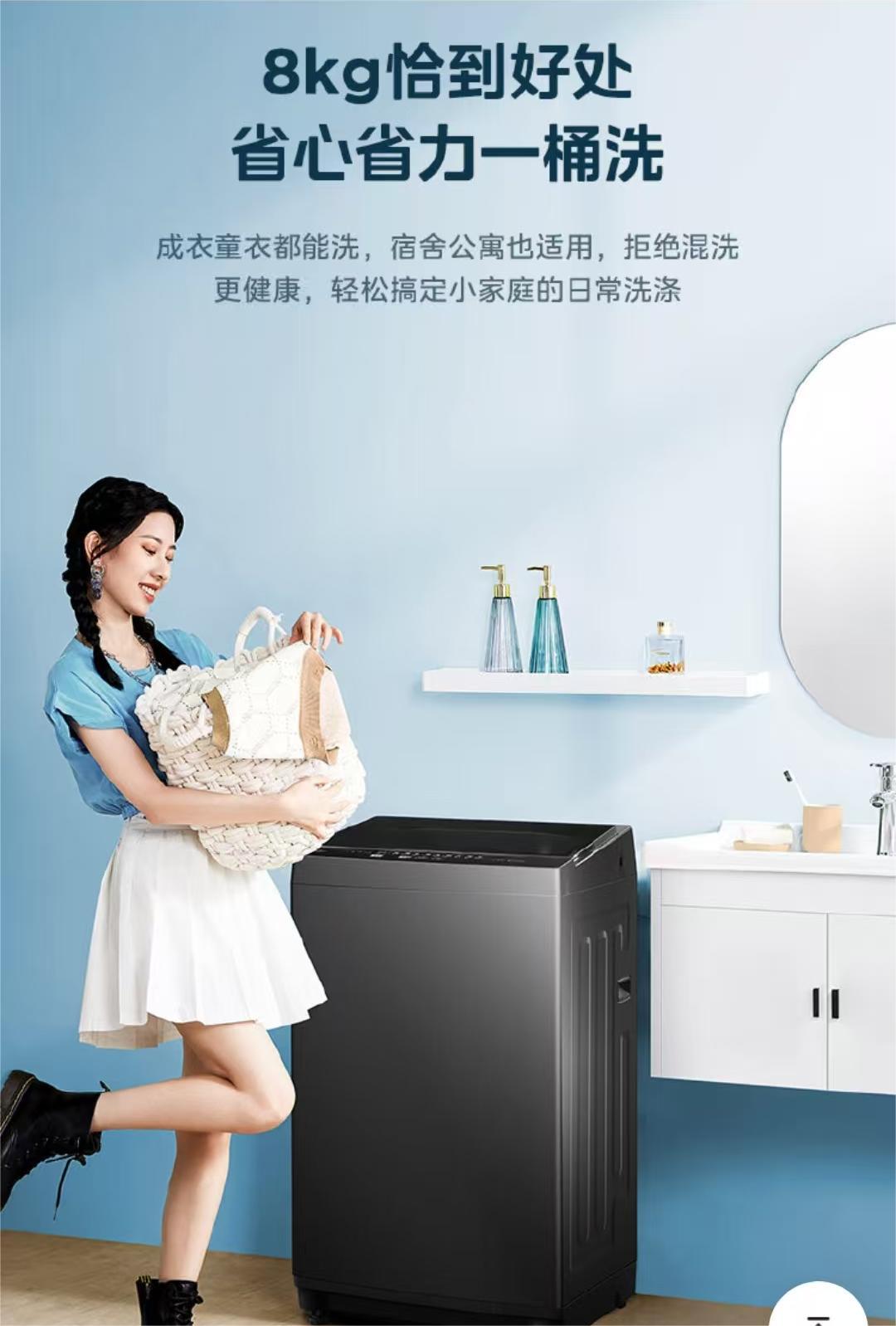 美的8KG波轮全自动洗衣机金属钛门盖透明烟灰色专利免清洗抗菌桶除螨洗仿手揉洗