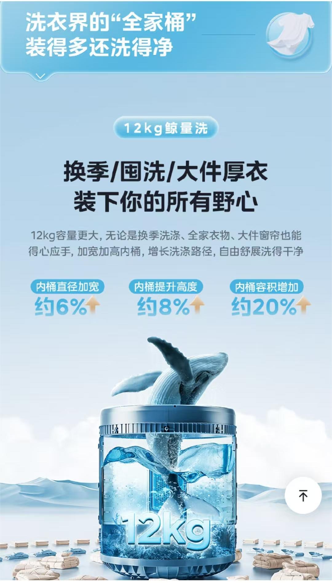 美的12KG鲸量洗超大容量全自动波轮洗衣机桶干燥专利免清洗抗菌桶除螨洗大床单被套轻松洗