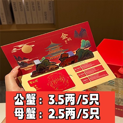 蟹黄色彩鲜艳 满口黄香;公蟹3.5两 母蟹2.5两 各5只