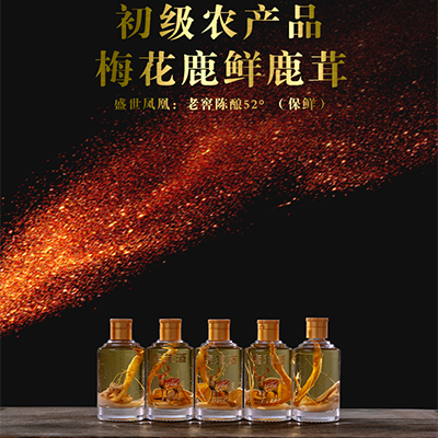 5瓶装礼盒极品蜡头鹿茸泡酒-固体鲜鹿茸50g