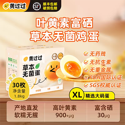30枚 黄过过叶黄素富硒草本无菌XL大码鸡蛋