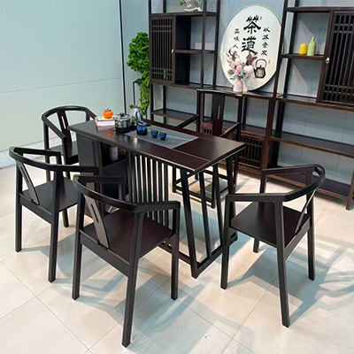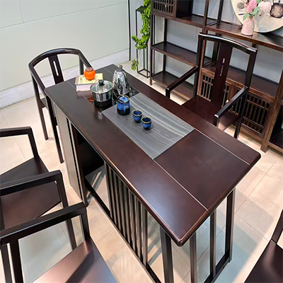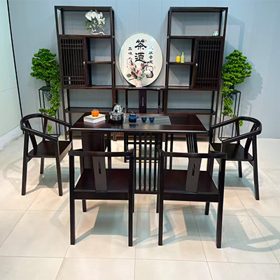 1.5米602橡木+乌金木工艺经典茶台-1桌+1主椅+4客椅+茶水柜+天然木纹石茶盘+养生炉套装