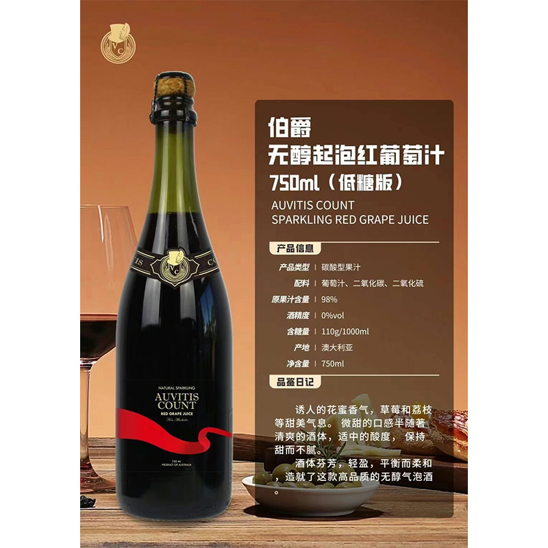 伯爵无醇起泡红葡萄汁750ml(低糖版) 6瓶/箱