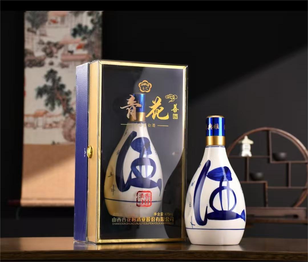 2瓶53度杏花村青花30V11(亚格力青花瓷瓶)清香型白酒