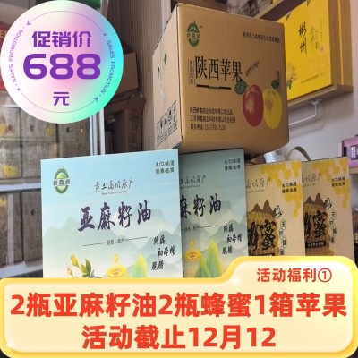 组合套款2盒彬州亚麻籽油2盒彬州蜂蜜1箱彬州苹果