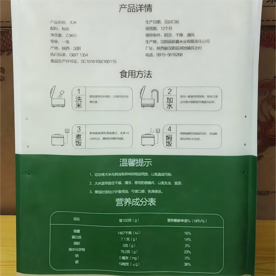 5斤装陕南新鑫汉阴富硒大米(真空双层袋)