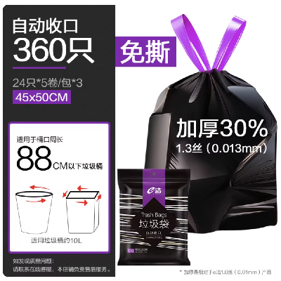e洁垃圾袋免撕加厚家用手提式抽绳垃圾袋
