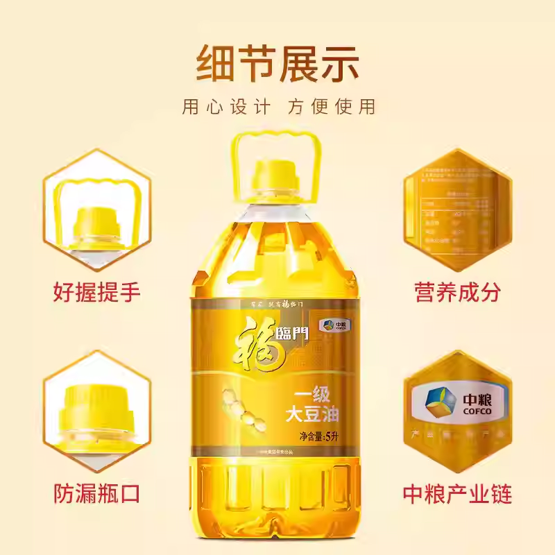 福临门一级大豆油5L*4桶食用油家用炒菜烹饪整箱中粮出品