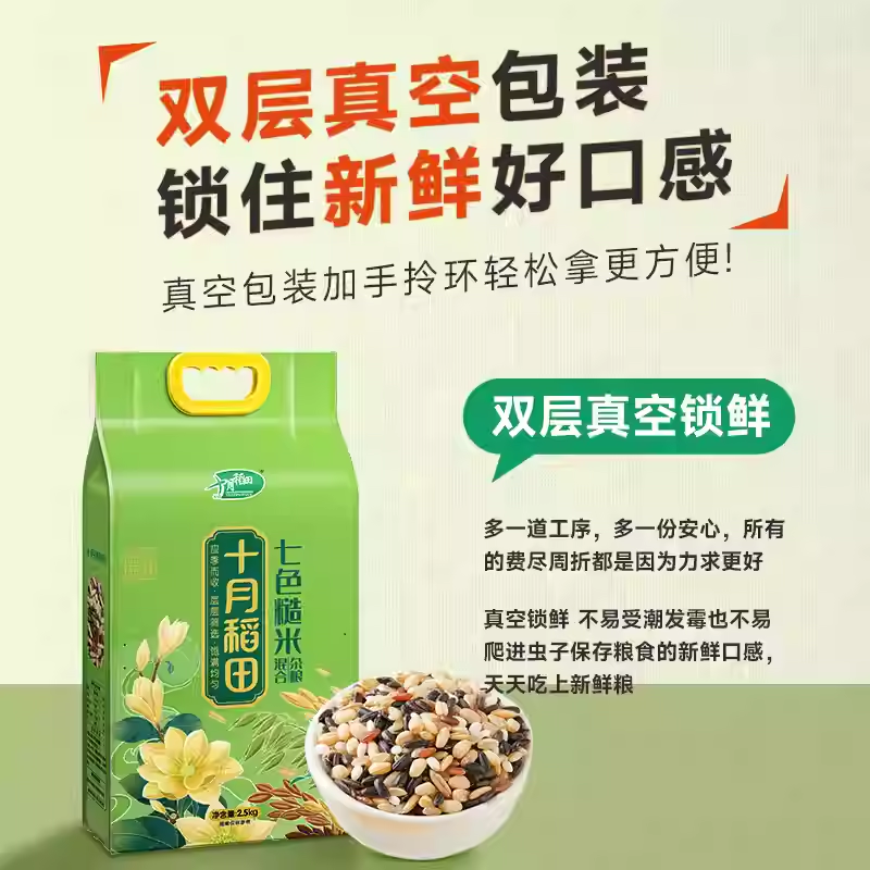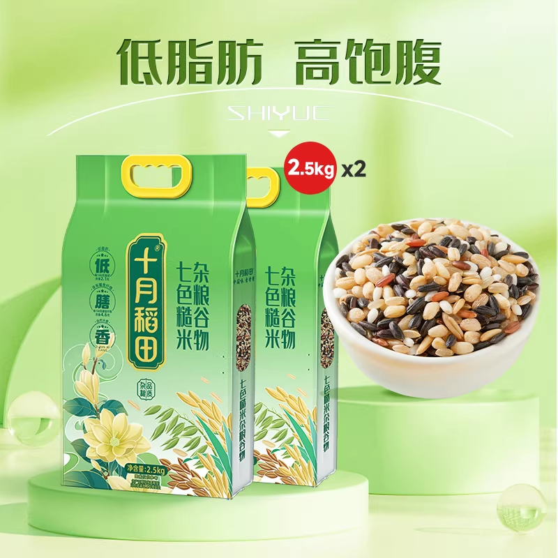 十月稻田七色糙米杂粮米五谷杂粮低脂粗粮糙米饭黑米红米真空包装