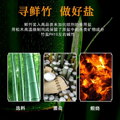 三烤竹盐经过三次提炼,获取多次微量元素,富含钙镁钾锶等多种矿物质,不加碘,低钠无抗结剂,弱碱性等特性和具有抗菌、凉血解毒、改善胃肠动力等功效。尤其是用于烹饪调味鲜味十足。