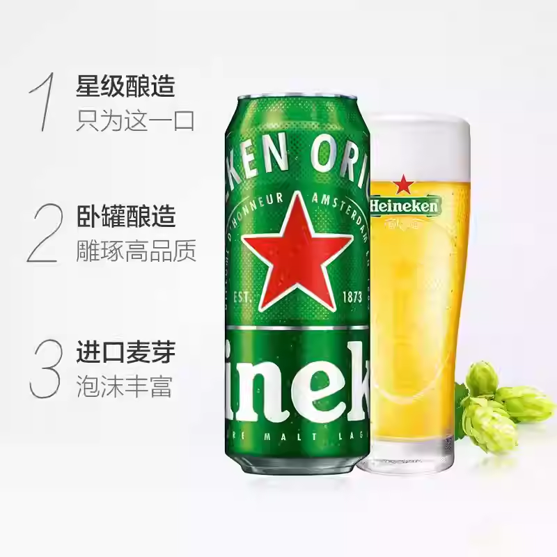 Heineken/喜力啤酒 500ml 12瓶听装全麦酿造啤酒整箱批发聚会畅饮