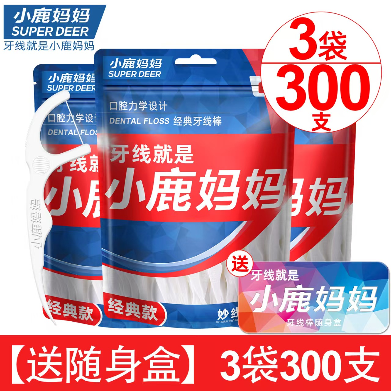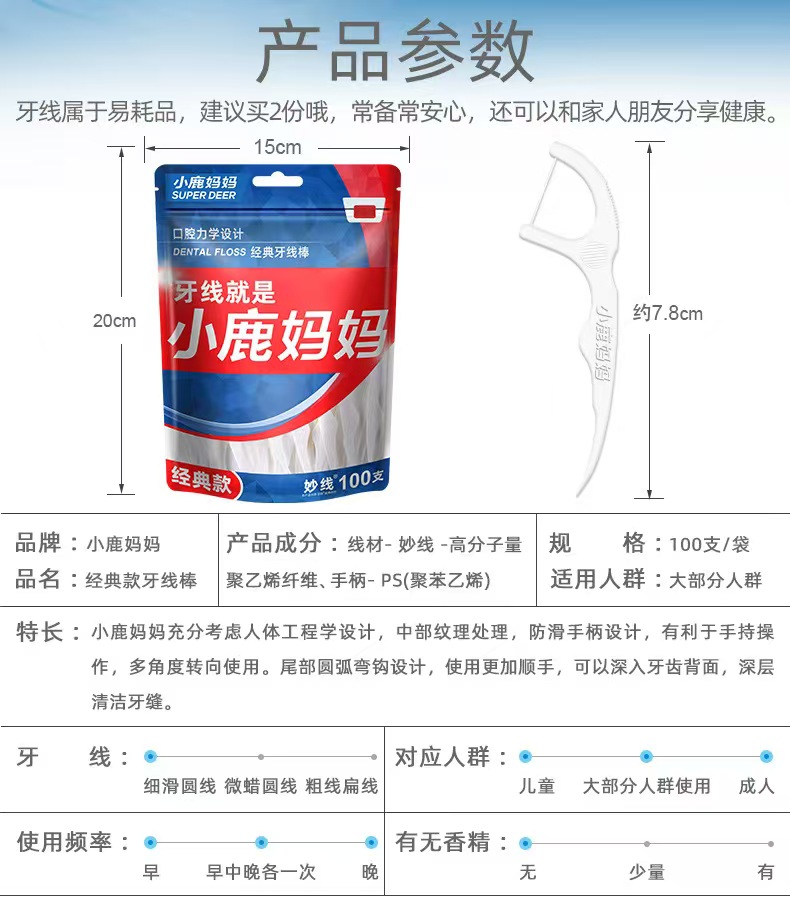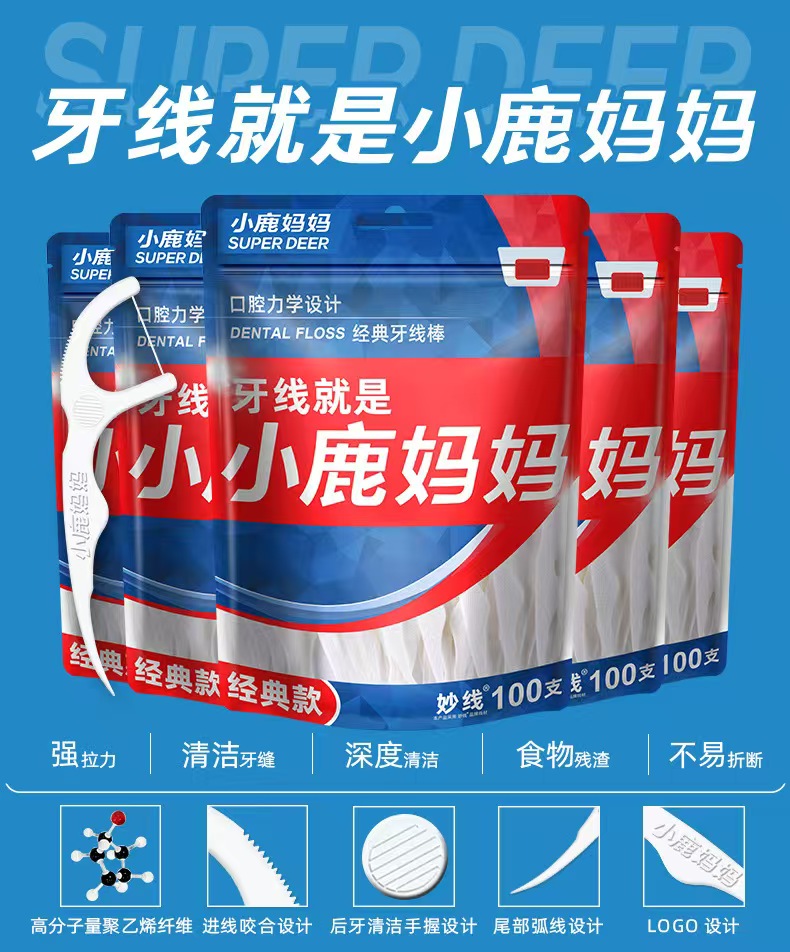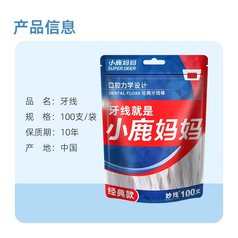 小鹿妈妈高弹力牙线签100只* 3袋 送随身盒*1 一根牙线 换你灿烂笑容